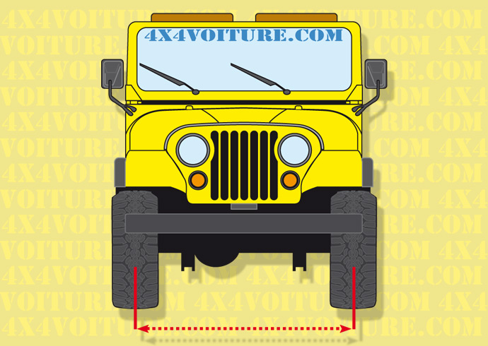 La voie est la distance qui sépare le milieu du pneu droit du milieu du pneu gauche. Cette valeur est importante dans les ornières ou les passages de passerelles ou de ponts en troncs d'arbre. Une voie faible n'est pas favorable en dévers car la limite de dévers dépend de cette mesure. Les risques de basculement sont plus importants. À l'inverse, un 4x4 doté d'une petite voie pourra se faufiler plus aisément entre les obstacles. Cette mesure peut être modifiée en changeant les jantes, mais l'augmentation des voies engendre des contraintes fortes pour la transmission et le risque de casse des demi-arbres est augmenté d'autant.